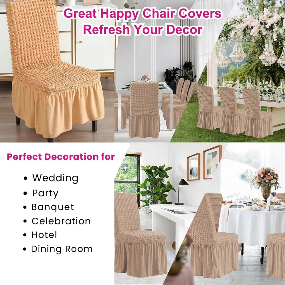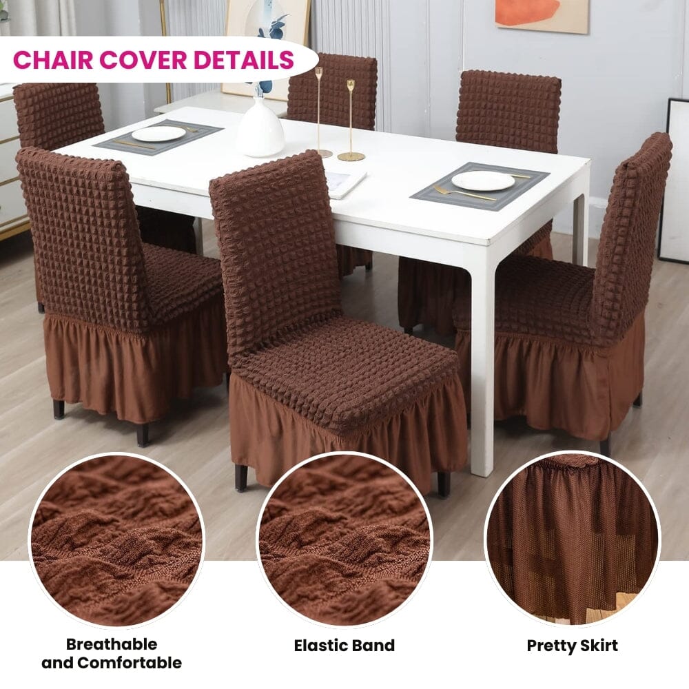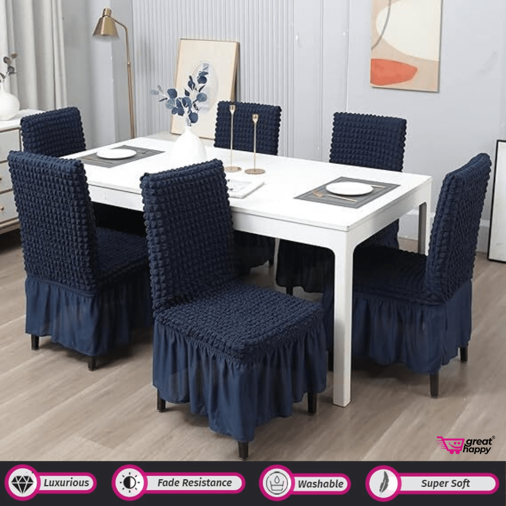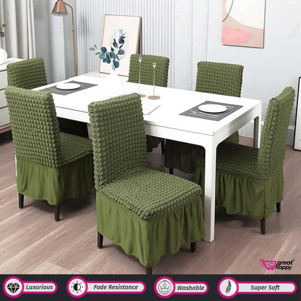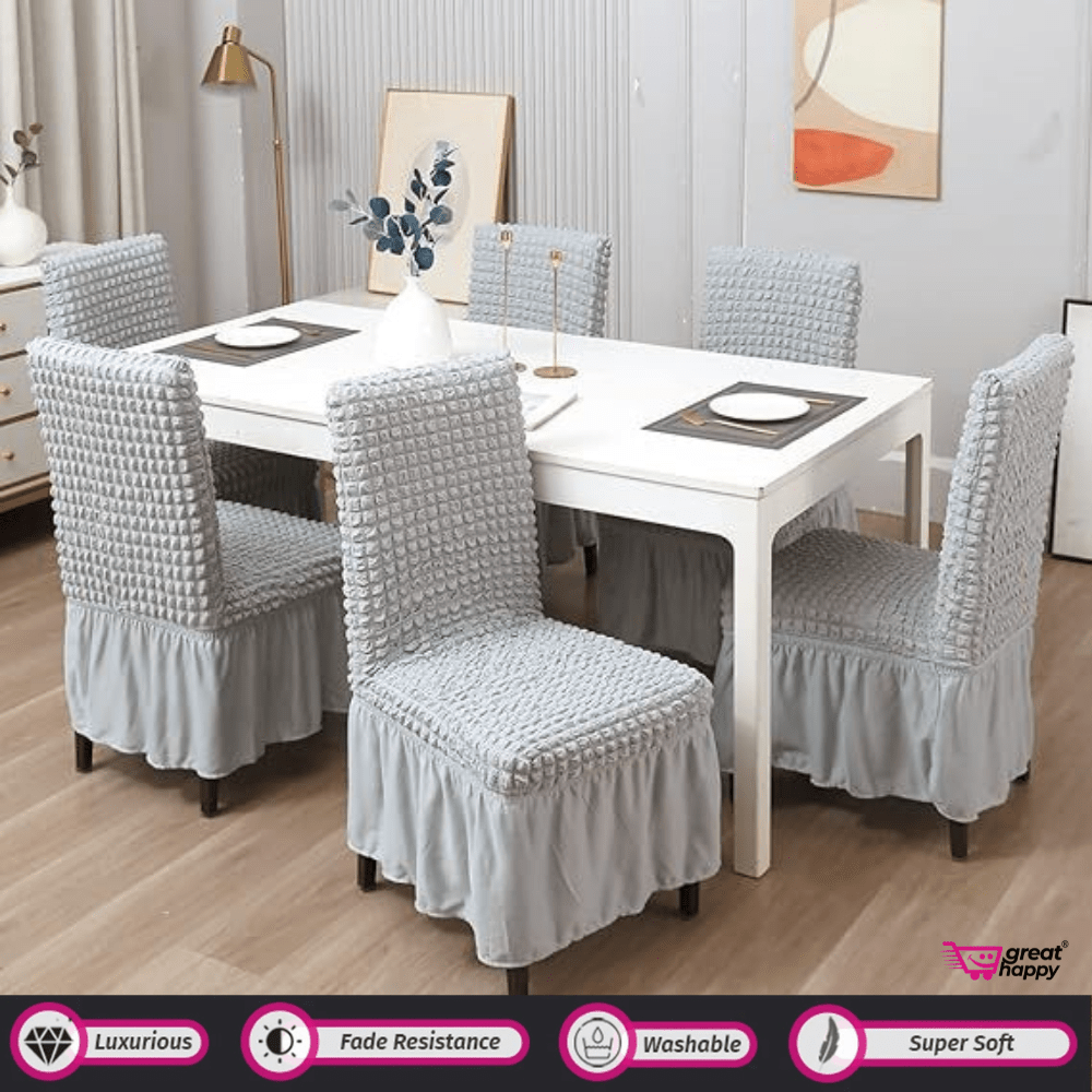 Give your dining room a modern makeover with a Premium Stretchable Bubble Frill Chair Cover. It is made from blended spandex material that will maintain its shape and contour for a custom-like fit!
